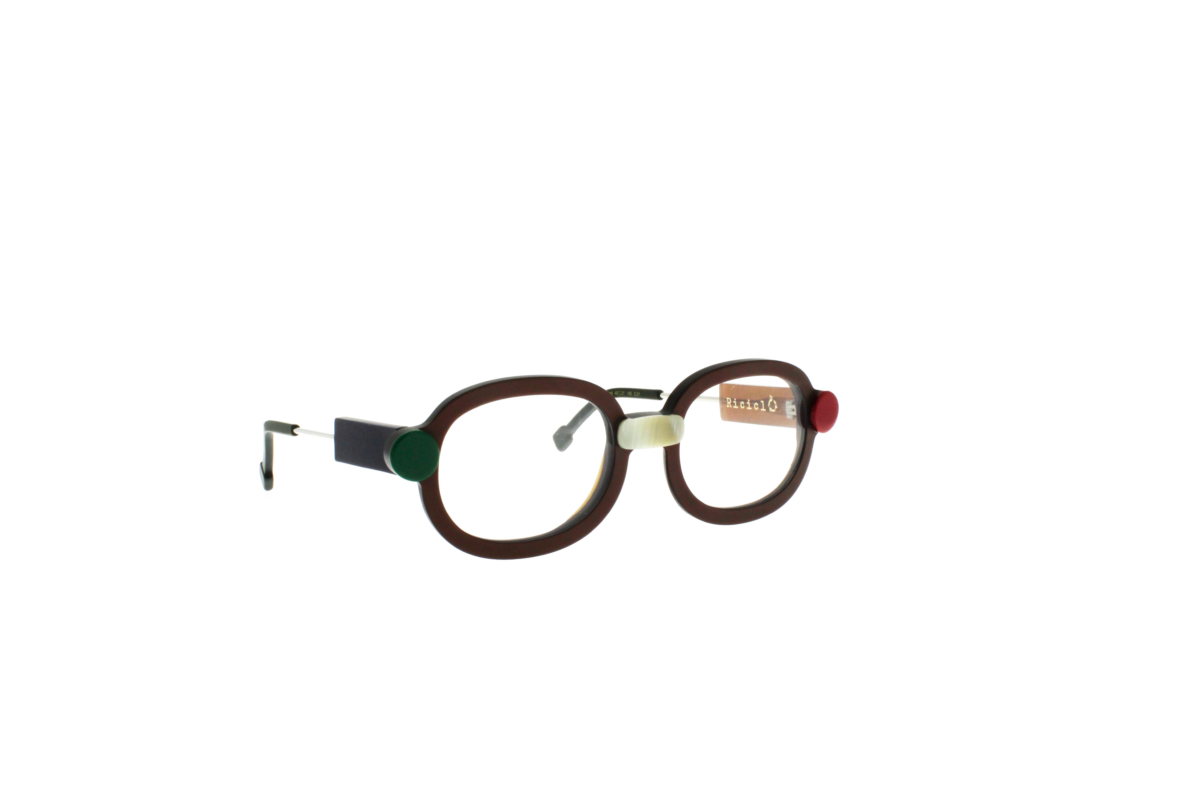 Diese Brille ist Teil der Riciclò-Kollektion, die ausschließlich aus wiederverwendetem Acetat besteht.
